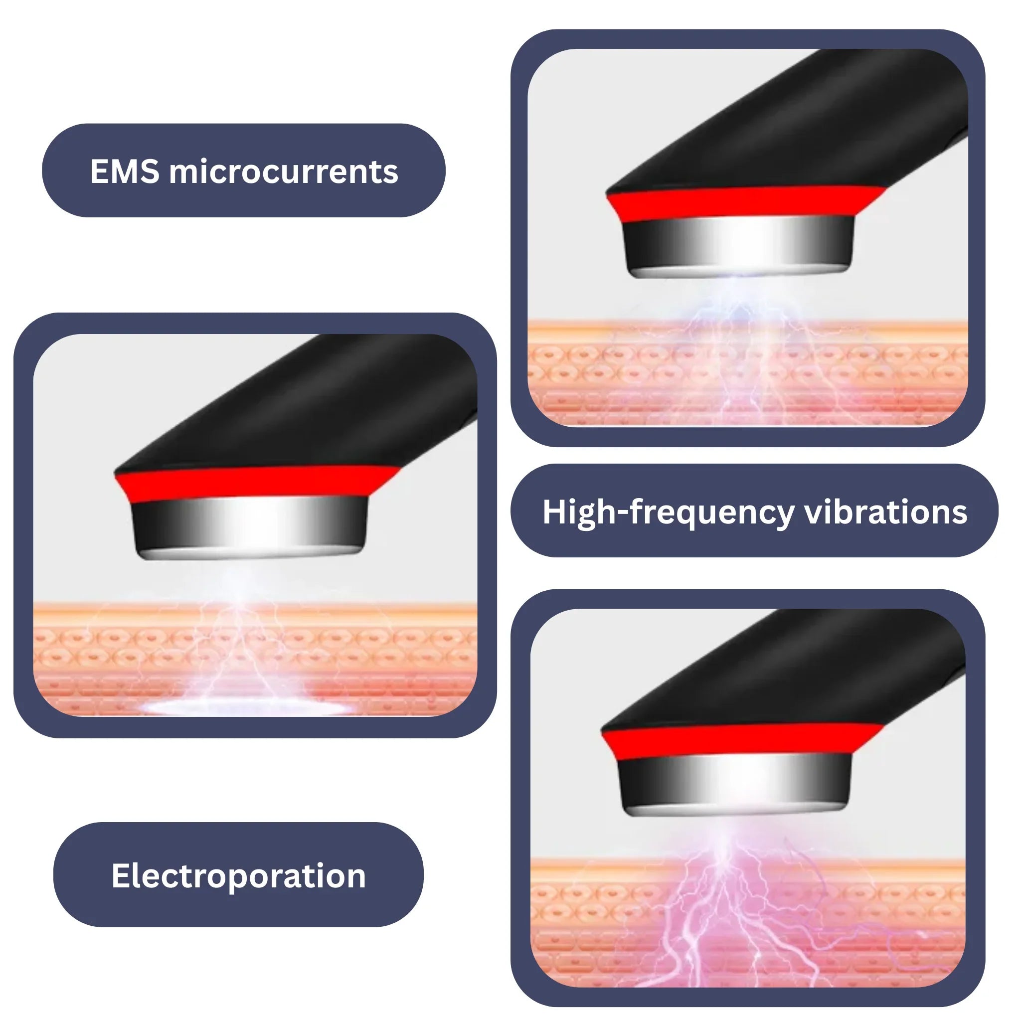 EMS microcurrents activate facial muscles and improve firmness, high-frequency vibrations boost circulation, and electroporation allows serums and essences to penetrate deeper into the skin.
