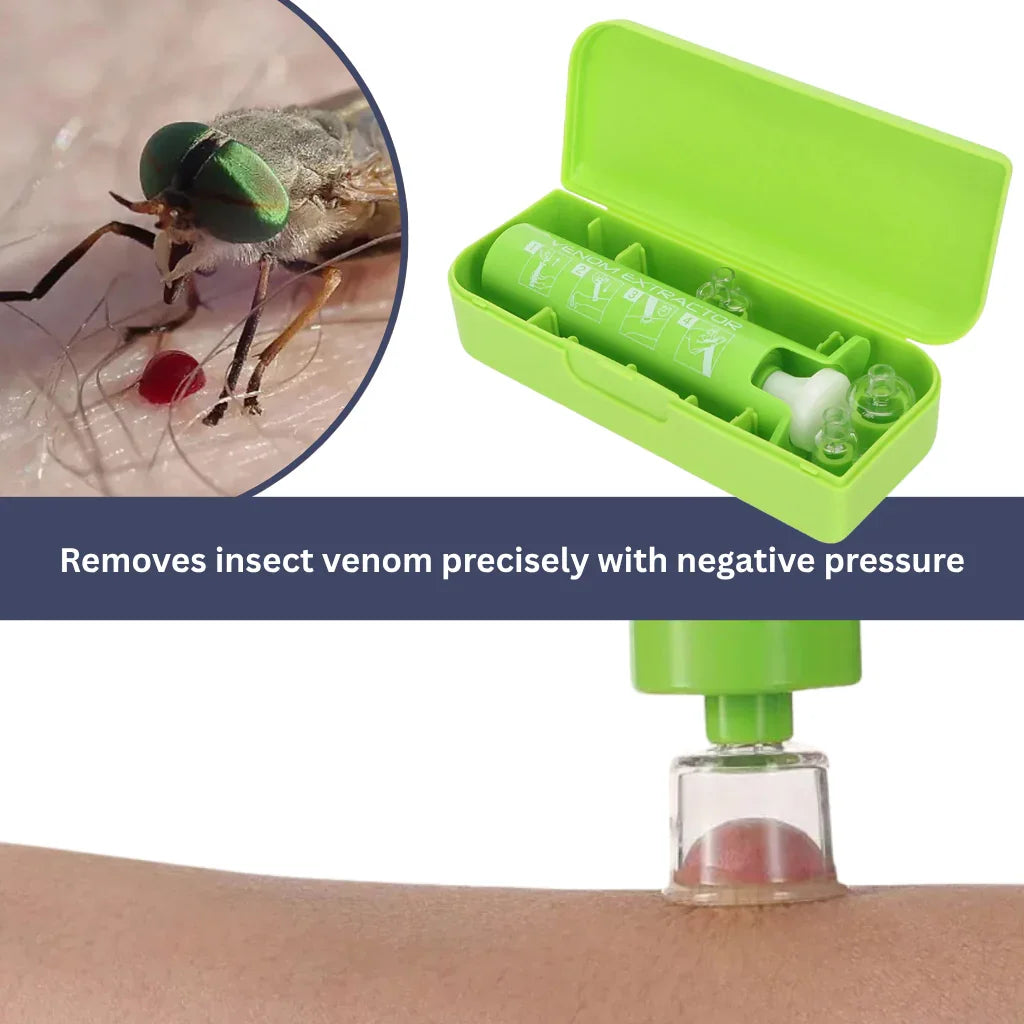 The VenomExtractor uses suction technology to quickly and effectively remove insect venom from the skin. Simply place it over the bite, pull out the plunger, and push it back in. This helps reduce swelling and itching fast.