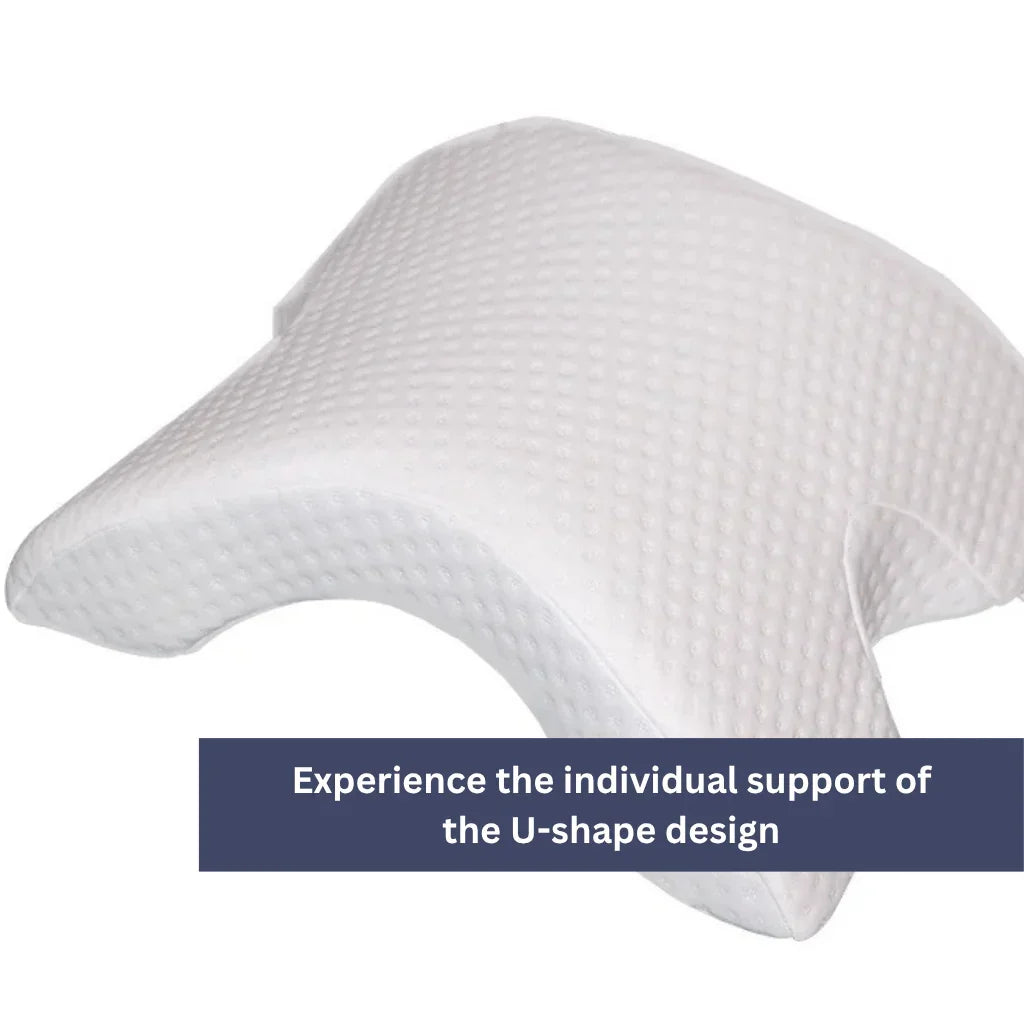 Its unique curved U-shape offers tailored support for side sleepers by gently cradling your arm and minimizing pressure points that can cause nighttime discomfort.