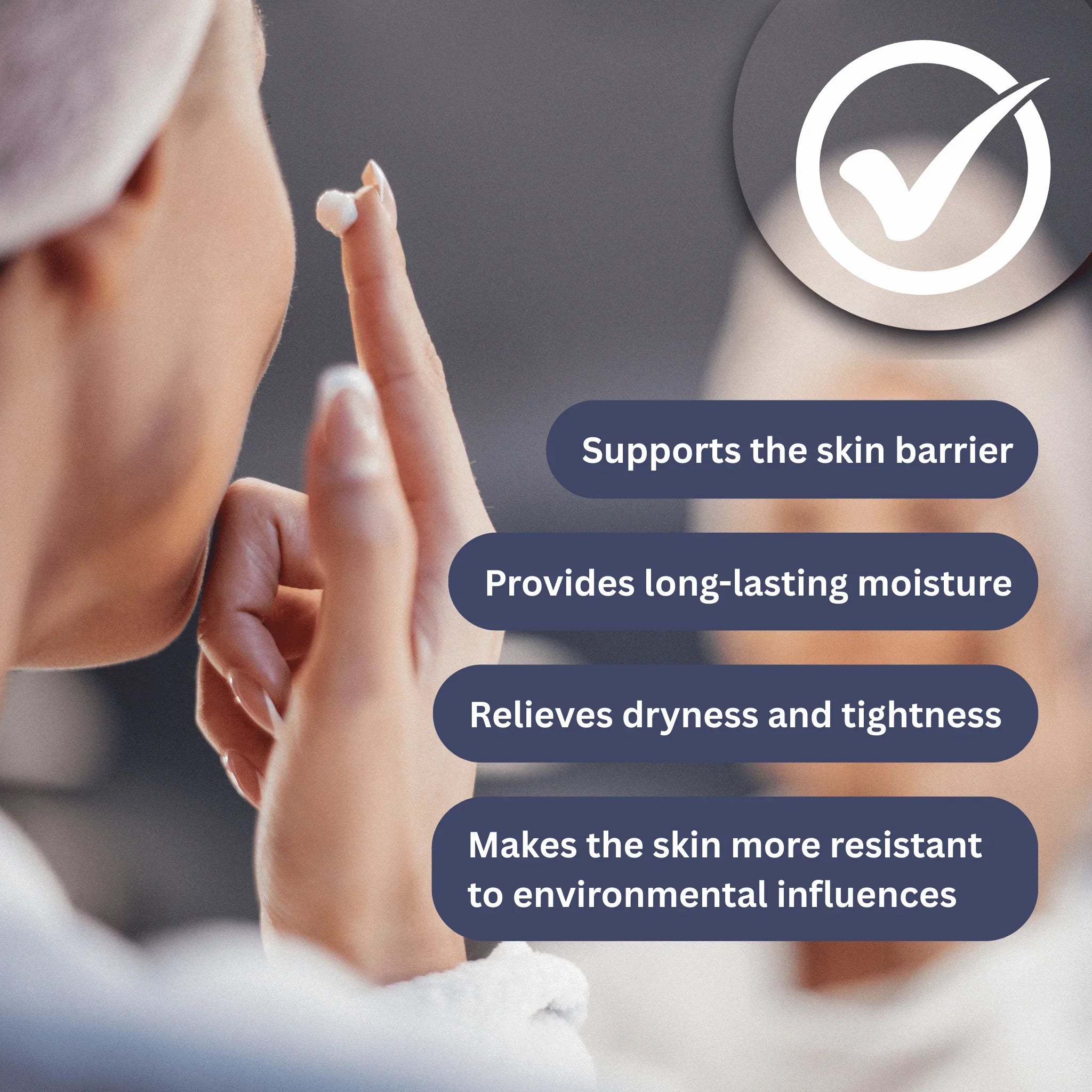 It provides your skin with intensive hydration, strengthens its protective barrier, and gives it noticeably more vitality.