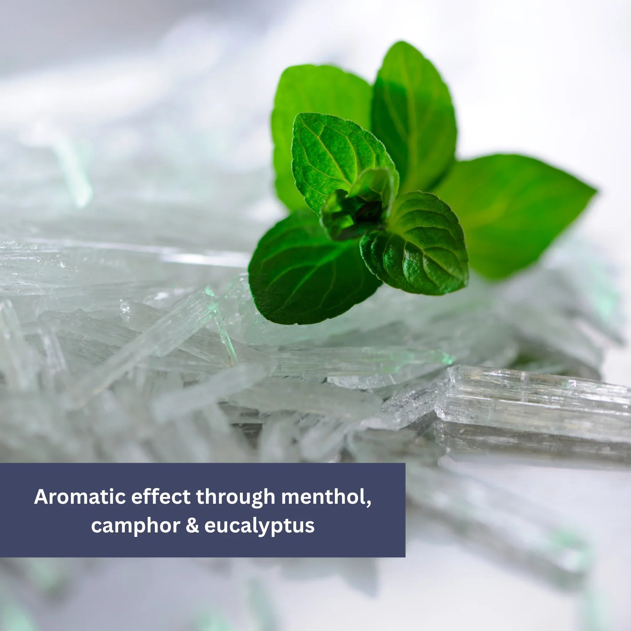 The blend of menthol, eucalyptus, and other traditional ingredients creates a refreshing fragrance experience that rejuvenates both body and mind.
