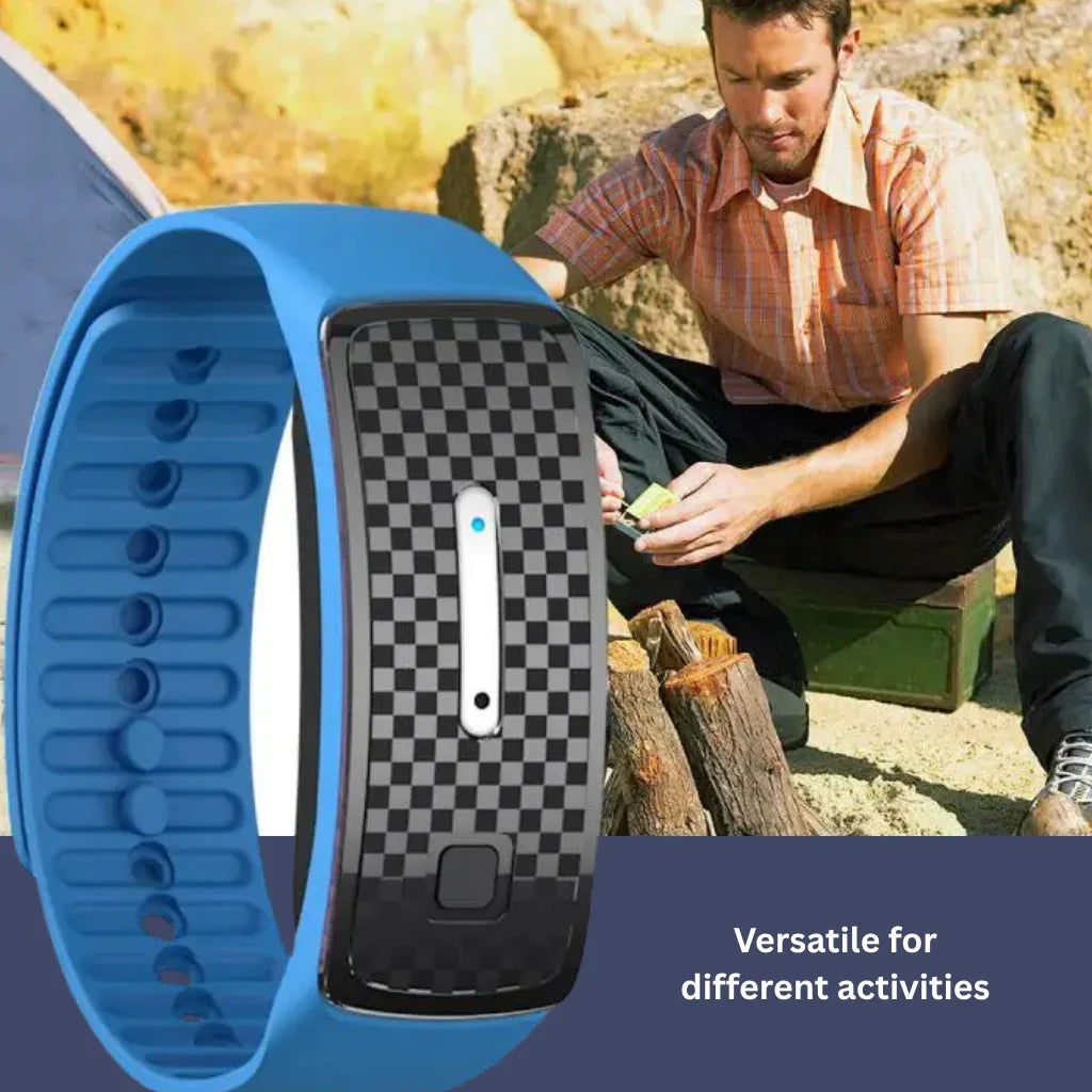 This bracelet uses advanced ultrasonic technology to repel mosquitoes by mimicking the sounds of male mosquitoes and dragonflies, effectively keeping biting females away — without any chemicals.