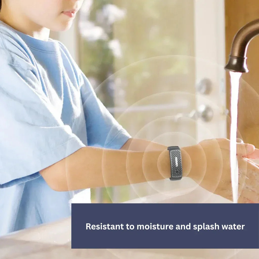 With 360° ultrasonic waves, the bracelet repels mosquitoes without harmful ingredients.