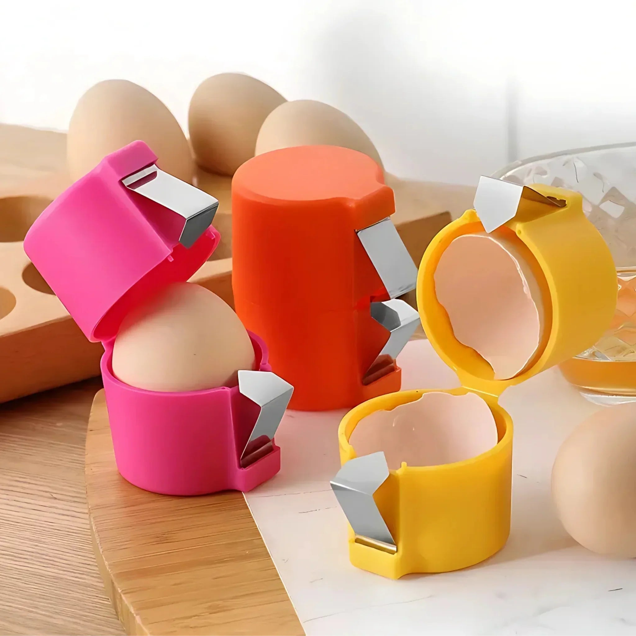 The egg is securely held in a specially shaped groove, while a gentle press on the stainless steel clip cracks the shell cleanly.