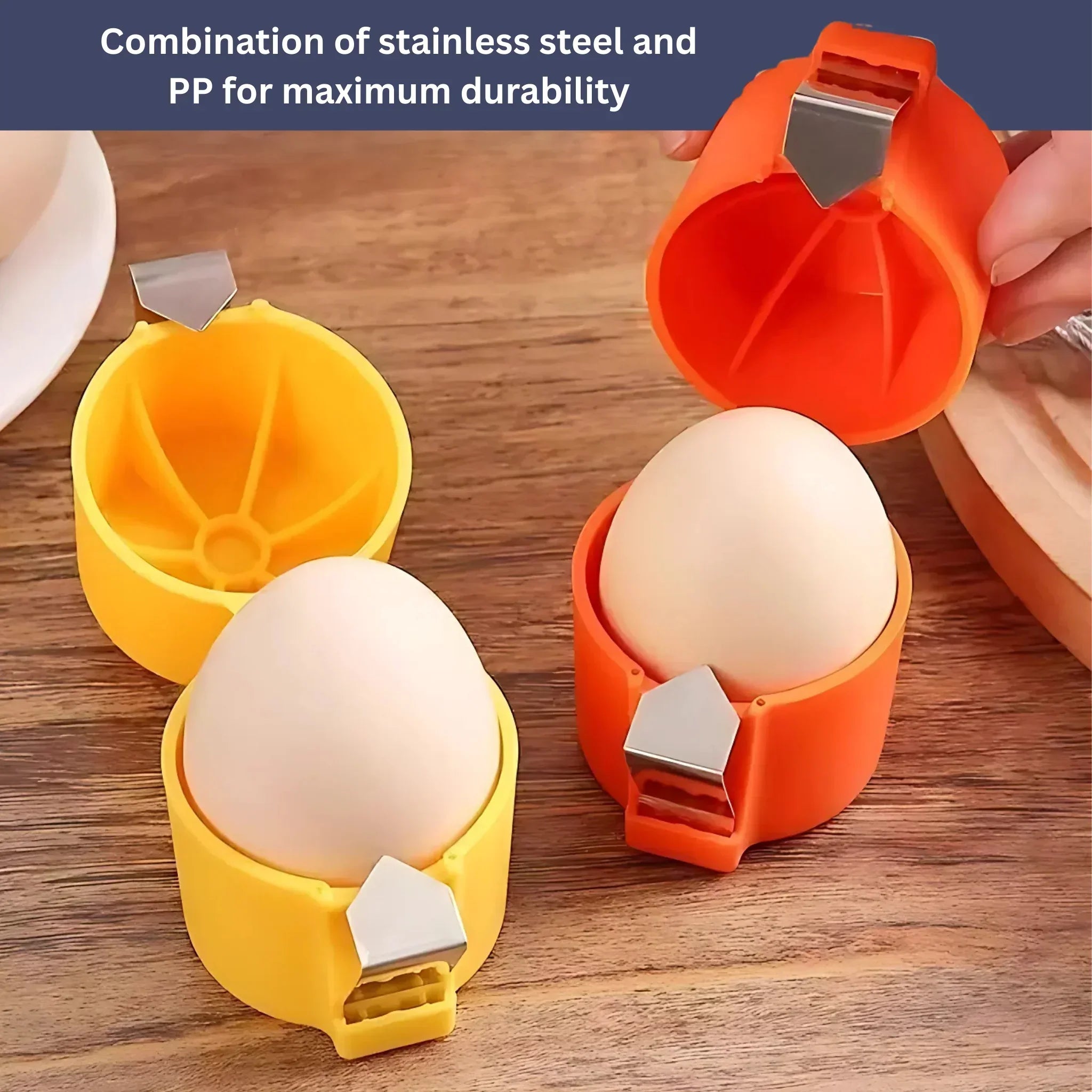 Press the stainless steel clip gently to crack the shell – no mess, no flying pieces.