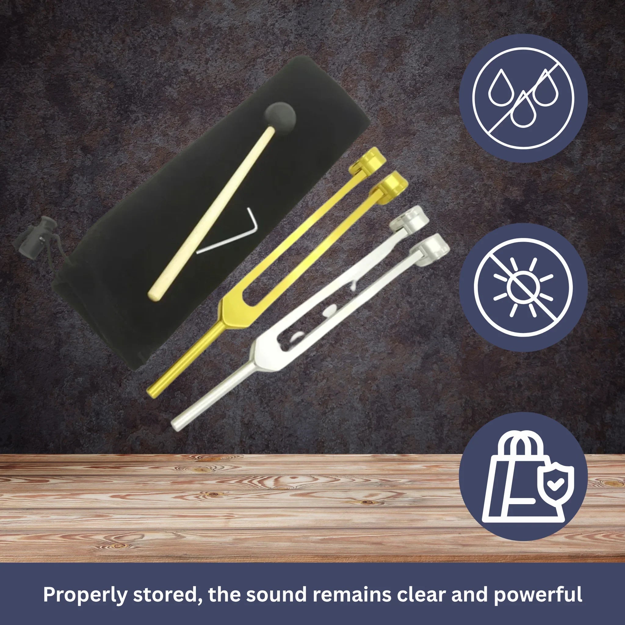 To ensure lasting enjoyment of your tuning fork, store it in a dry place and protect it from direct sunlight.