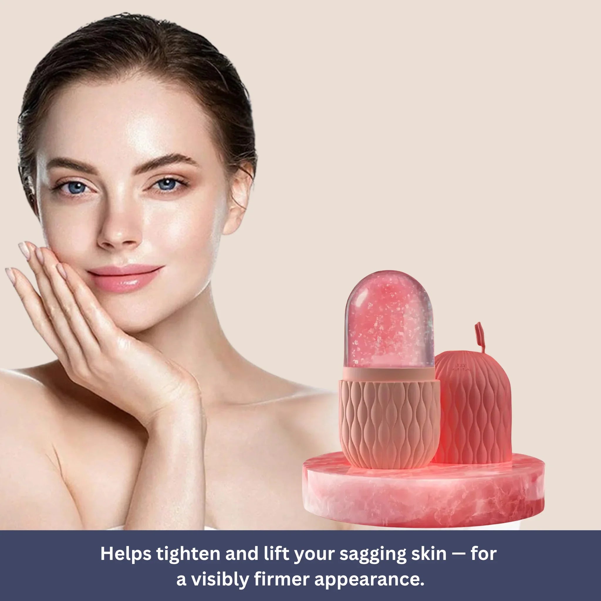 With regular use, cold therapy promotes circulation and helps tighten sagging skin. When you roll upward, your facial muscles are stimulated, creating a visible lifting effect.