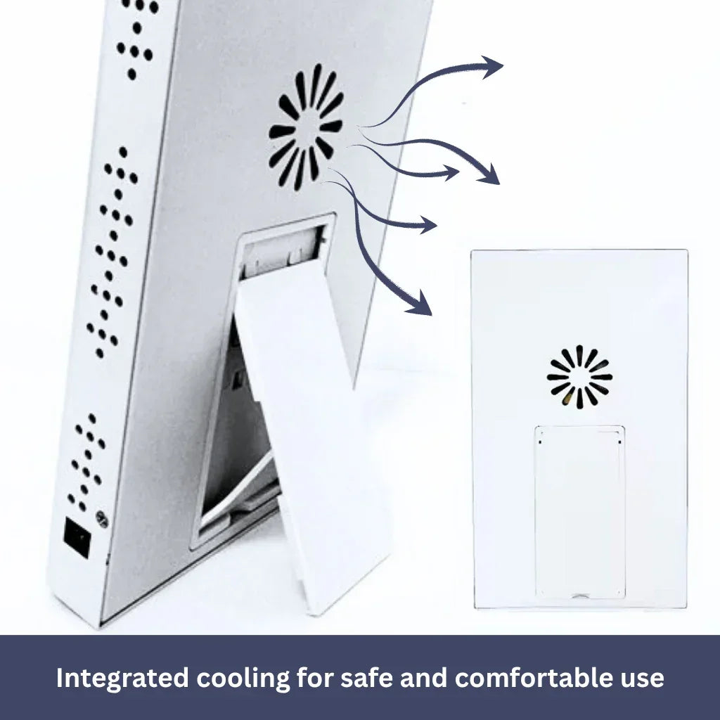 The integrated cooling system ensures safe and effective sessions.
