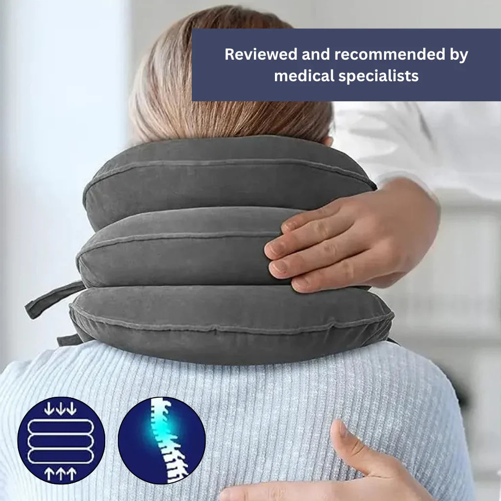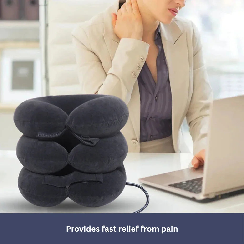 This leads to quick relief from neck, shoulder, and upper back pain. Just place it around your neck, inflate, and relax!