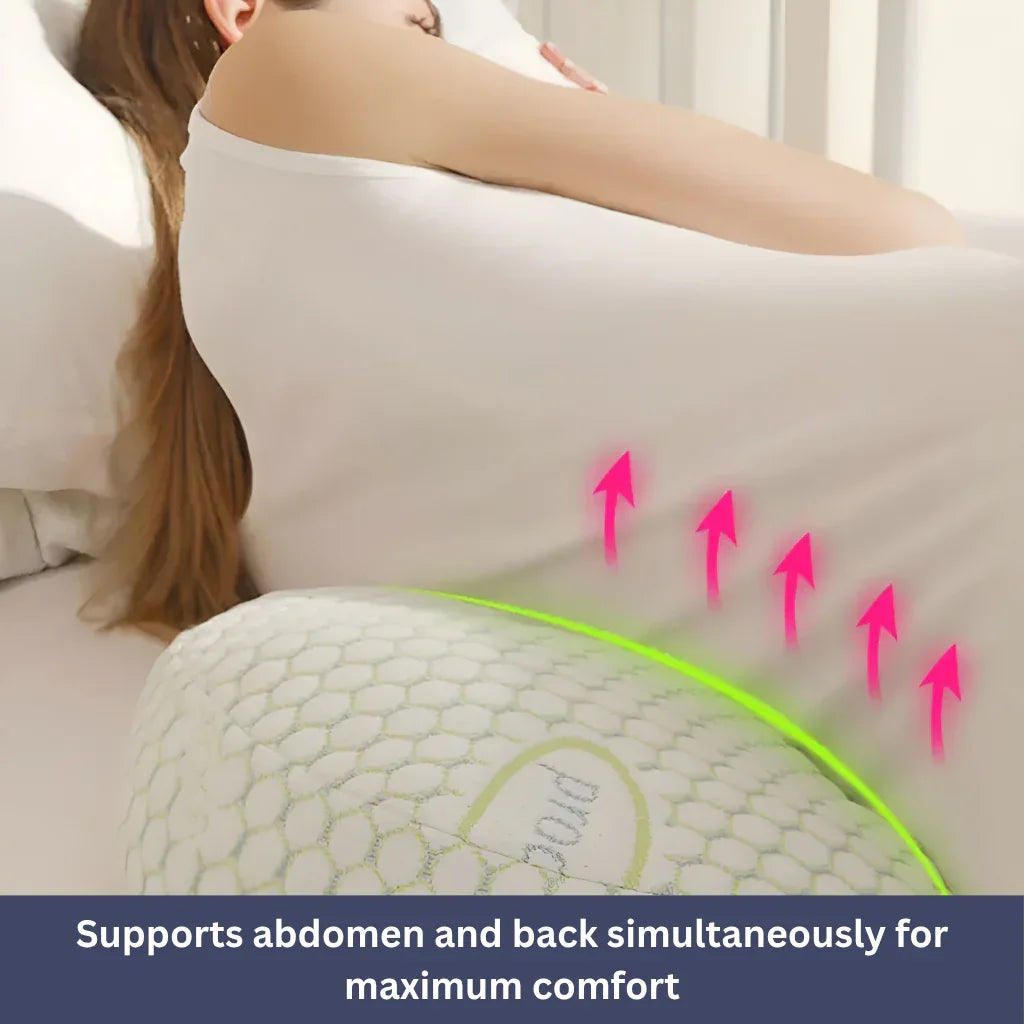 It provides targeted support for your belly and back and ensures that your spine stays in the optimal position.