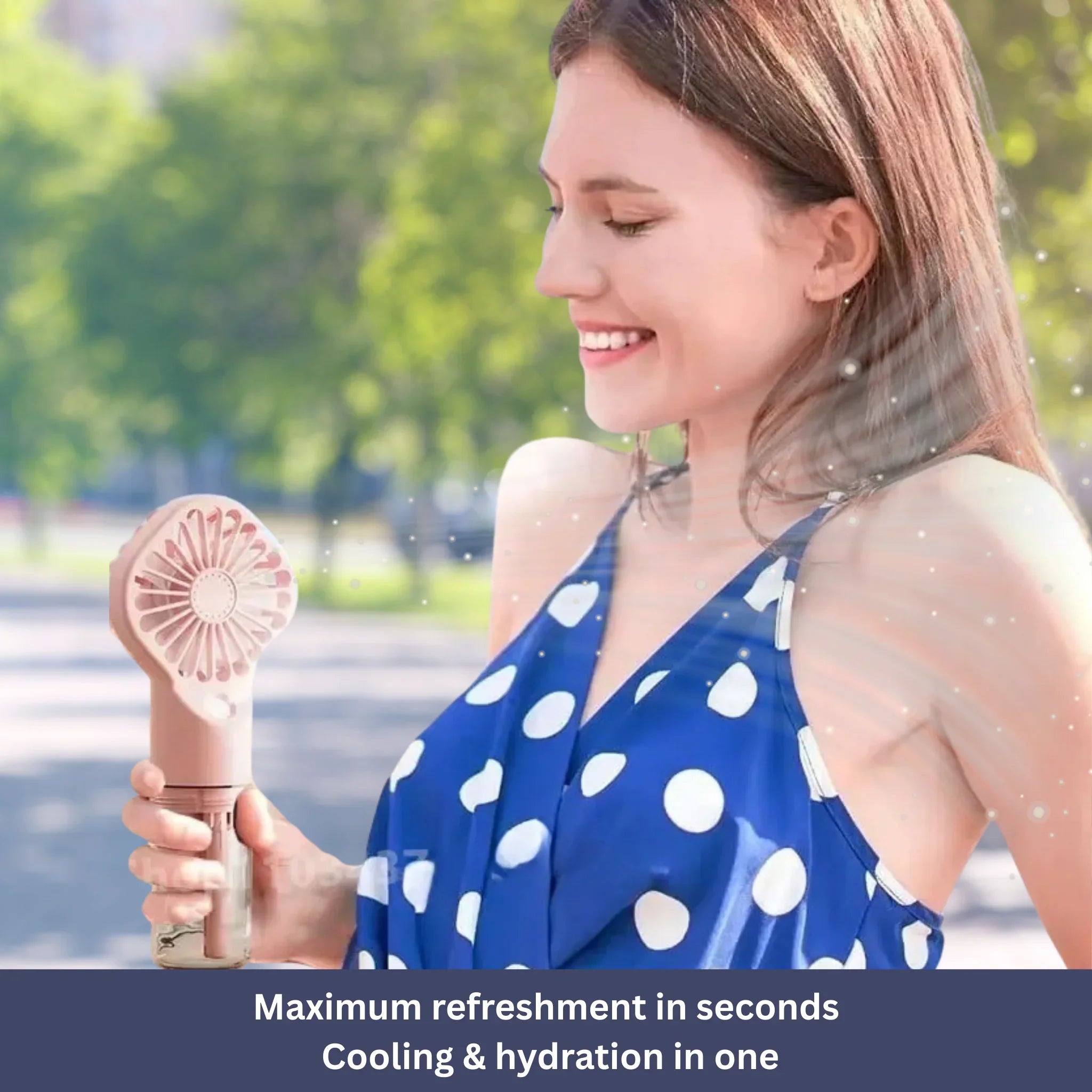 Whether indoors or under the sun – this 2-in-1 fan delivers instant cooling and refreshing mist.