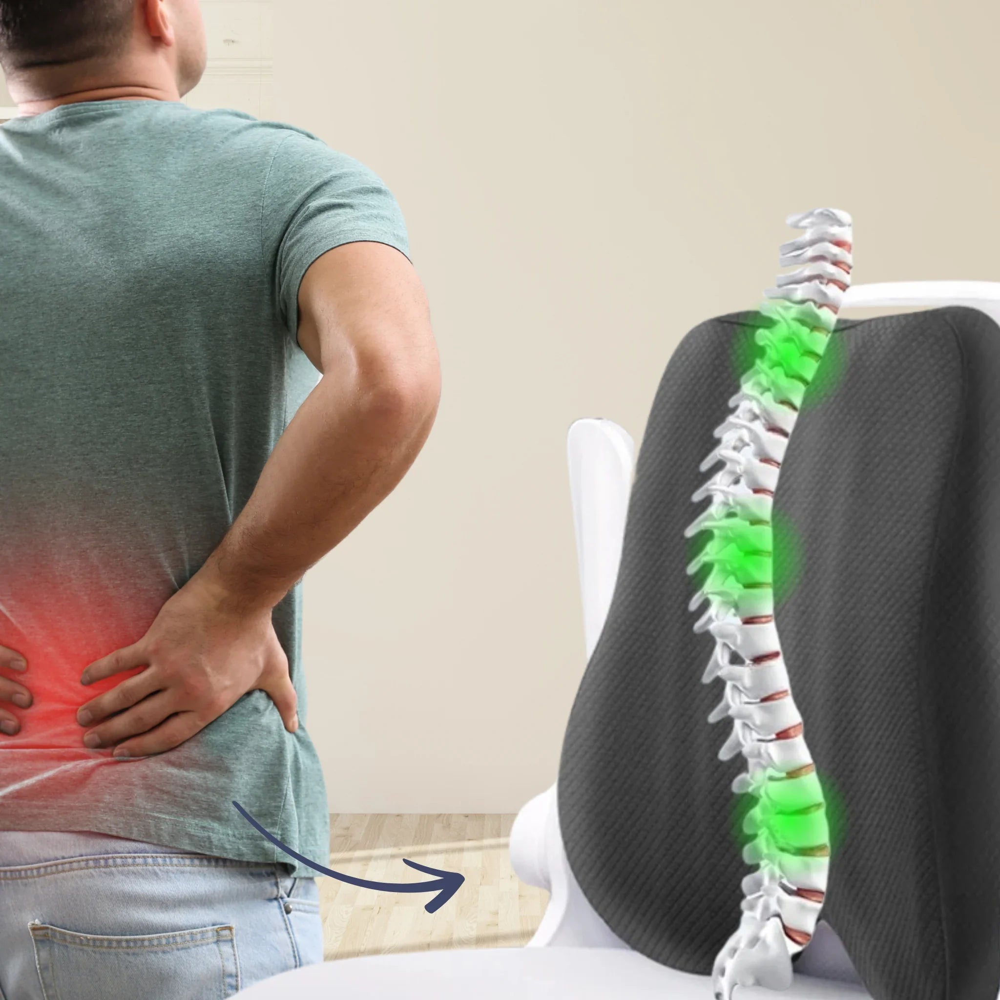 The ergonomic back cushion with an anatomical S-curve was specially developed to specifically relieve pressure on the lower back .