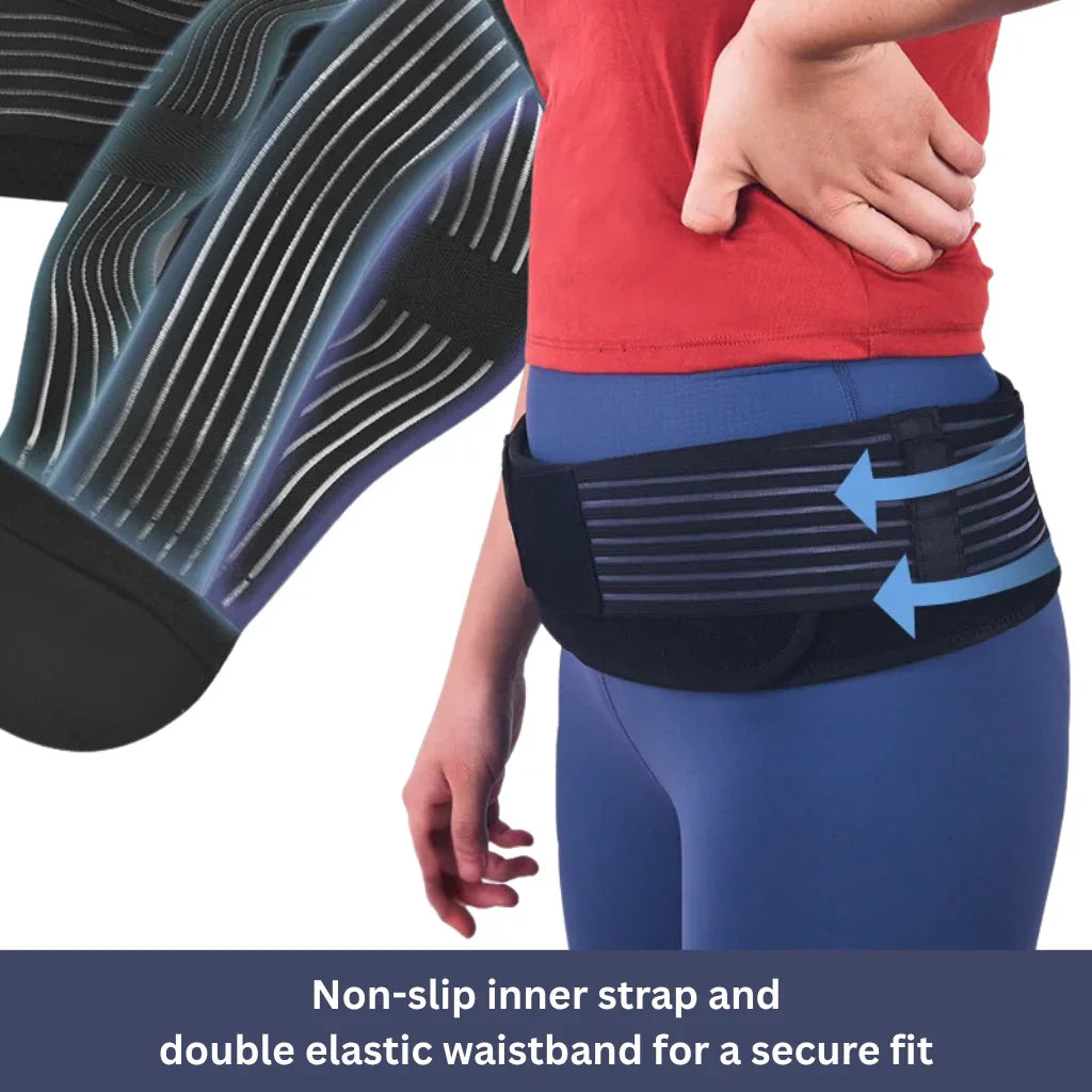 The ProBack relieves pain through targeted compression and stabilization of the sacroiliac joint.