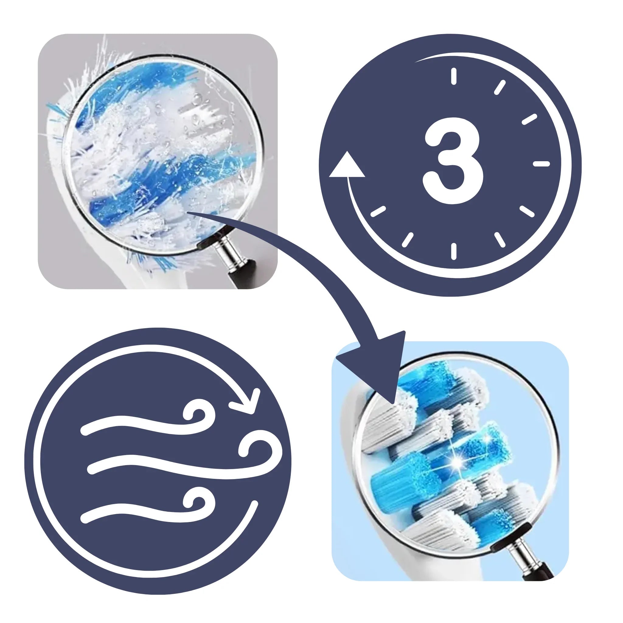 For 100 seconds, a strong airflow ensures the toothbrush is completely dried.