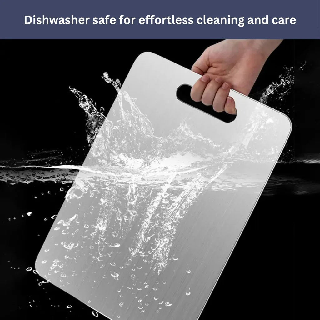 Yes, the SteelMaster cutting board is dishwasher safe and easy to clean.