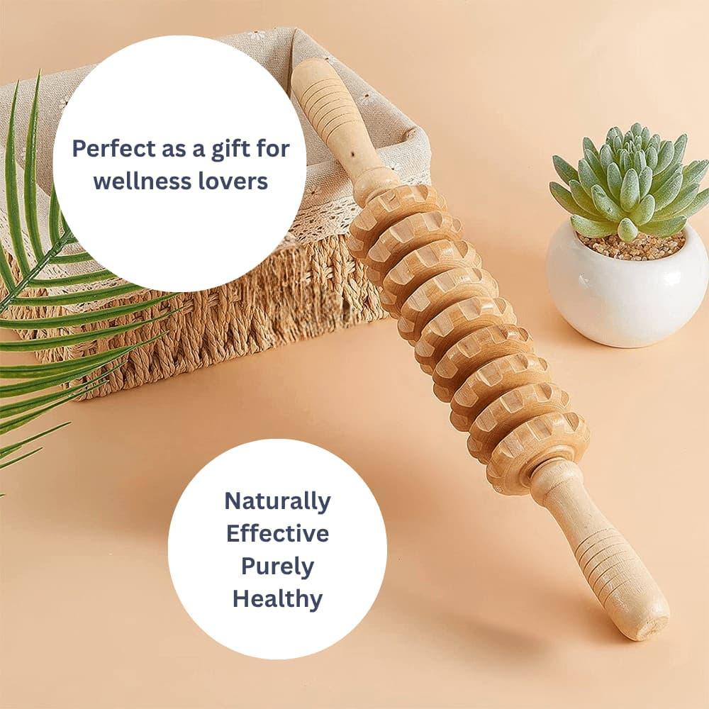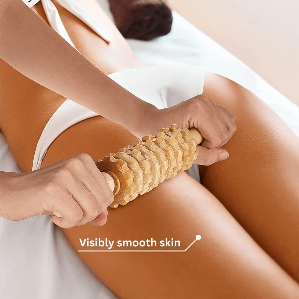 Experience the soothing benefits of targeted massage with the VitaWood Cellulite Roller by GesundPur.